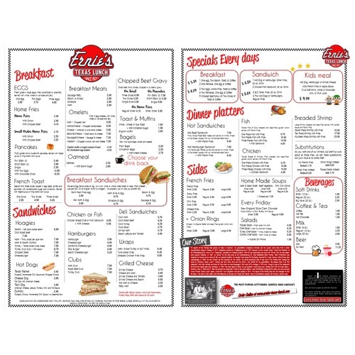 Ernies Texas Lunch 50s Diner Menu Redesign Menu contest